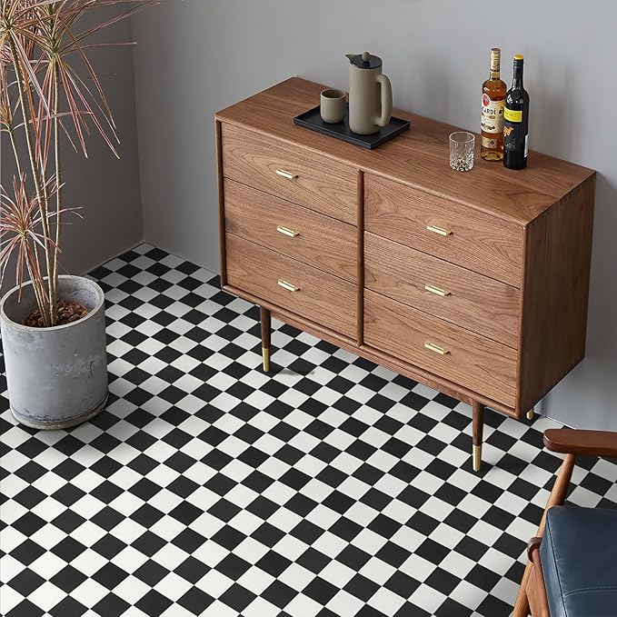 System is a complex system of plain-coloured tiles produced on a frost-proof glazed stoneware support by Ceramica Vogue. can be layed using Victorian style classic Black & White